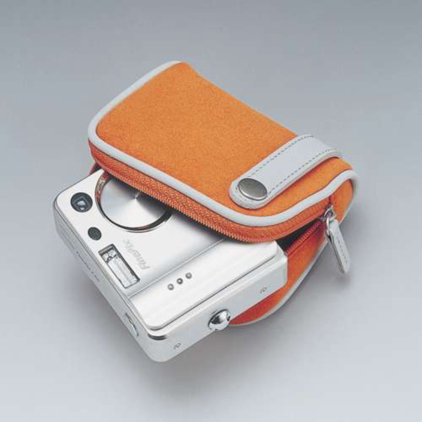 バッグに収納する時に邪魔にならないスウィングストラップが付いた、シンプルなデジタルカメラケースです。