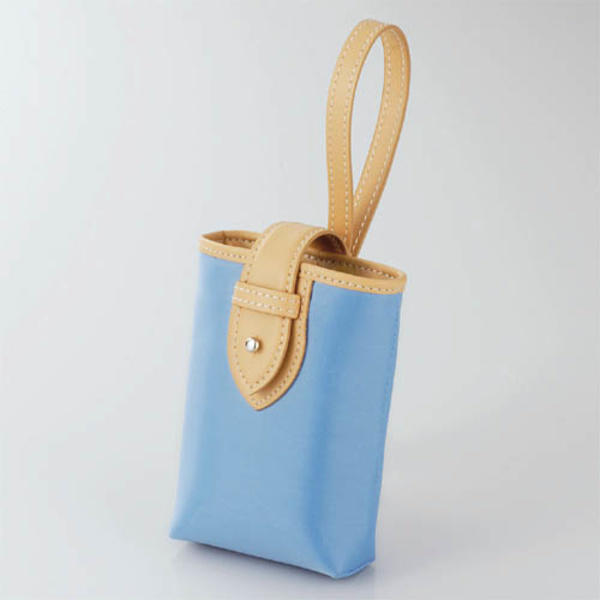 ナイロン素材を用い、携帯性を重視すると共に女性らしいカラフルなカラー展開で外出先でも軽快に持ち歩けるハンドストラップを装着したコンパクトデジカメケース。