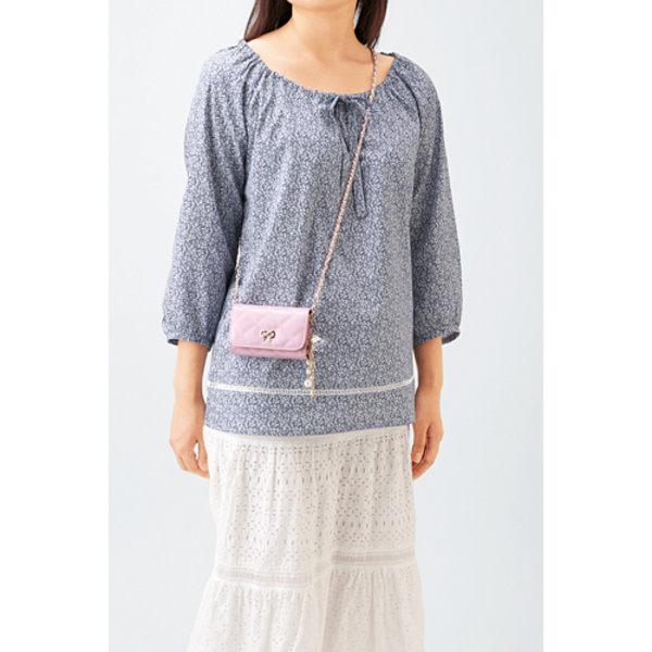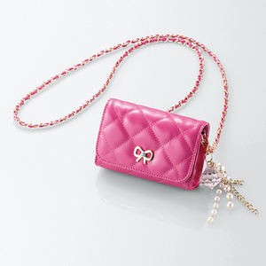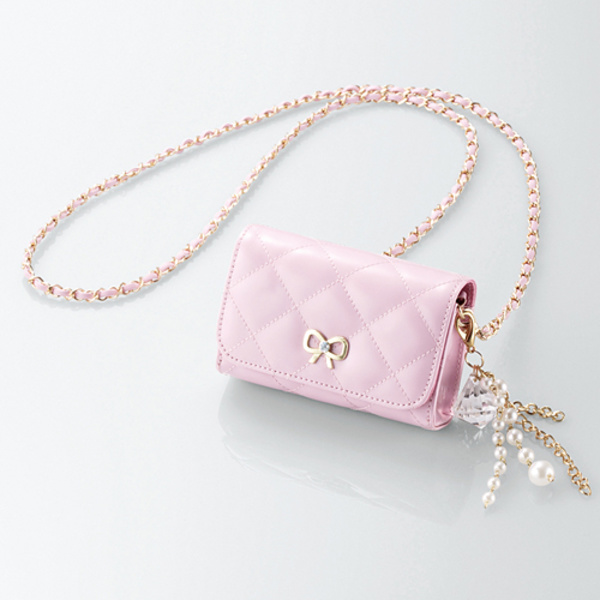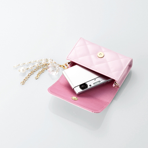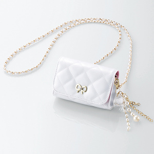 クリスタルチャームとロングチェーンが付いてリッチな印象をプラス!光沢感のあるキルティングエナメル素材を使用したデジタルカメラケース“U.style”。