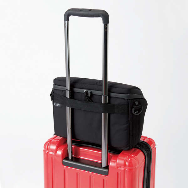 バッグ本体の背面にあるキャリーホルダーによってキャリーケースに固定できます。