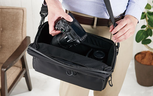 モバイル周辺機器なども持ち運べるBOXタイプショルダーカメラバッグ “GRAPH GEAR”