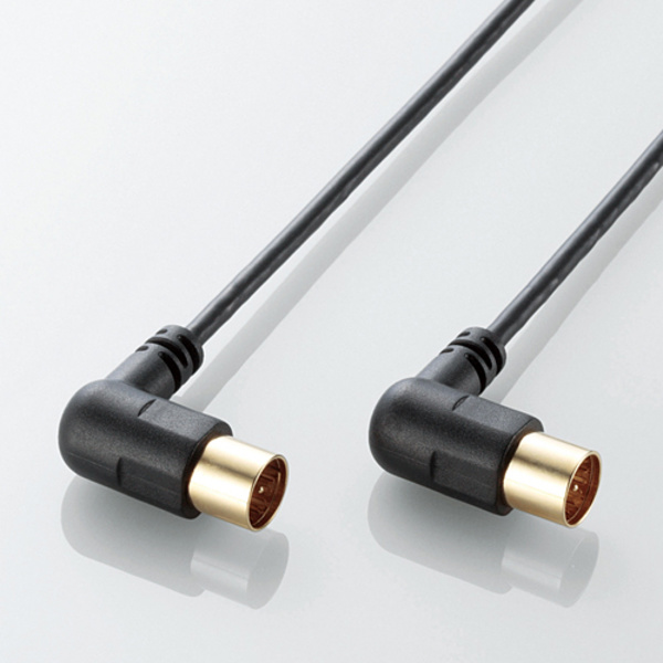 細くやわらかいのでせまい場所でも取り回しがラクラク!アンテナコンセントと、テレビ、チューナー、TVチューナー内蔵のパソコンなどを接続する、両端L型プラグのアンテナケーブル。