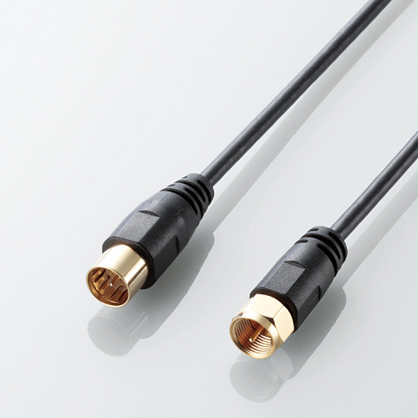 細くやわらかいのでせまい場所でも取り回しがラクラク!アンテナコンセントと、テレビ、チューナー、TVチューナー内蔵のパソコンなどを接続する、ネジ型プラグ-ストレート型プラグのアンテナケーブル。