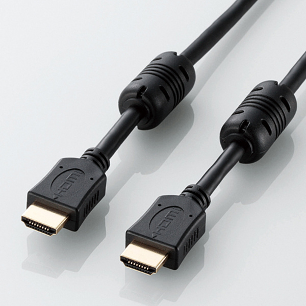 フェライトコアにより電磁波ノイズを吸収し、より正確に信号を伝送。3D映像伝送・ARCに対応し、映像信号と音声信号に加え、100Mbpsのイーサネット通信を実現する、 HIGH SPEED with Ethernet認証済み“イーサネット対応HIGH SPEED フェライトコア付きHDMIケーブル”。