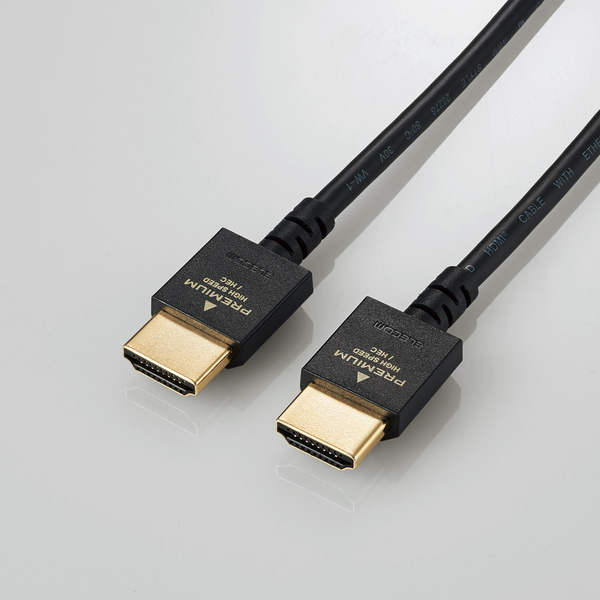 高速伝送で高画質映像と音声を忠実に伝送できるPremium HDMI Cable規格認証済みのスリムケーブル