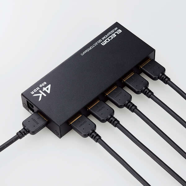 パソコンやゲーム機など5台のHDMI機器の信号を切り替えて、高画質・高音質のまま1台のディスプレイやプロジェクターなどのHDMI搭載映像機器に出力します。(CEC対応、ARC、HECは非対応です。)