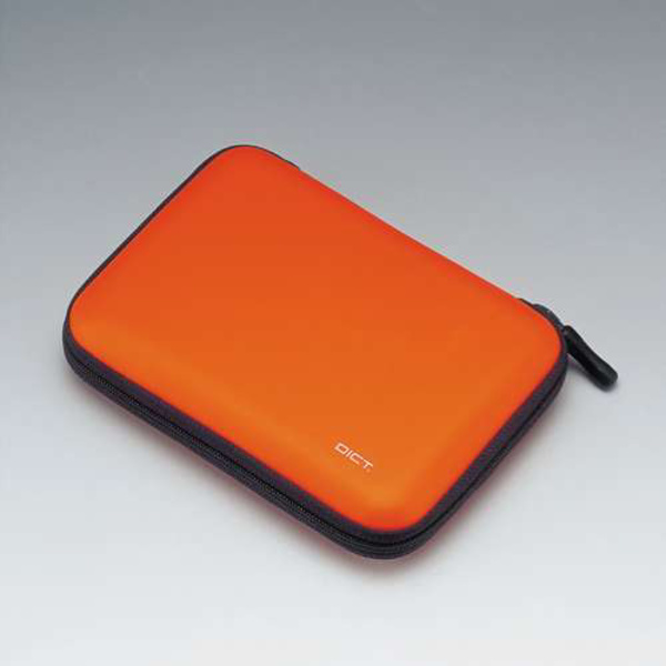セミハードタイプ電子辞書ケース。 粘着シートで電子辞書本体をケースに装着して使用できます。 メディアカードなどを収納するためのインナーポケットも装備!