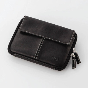 イヤホン機能搭載・非搭載どちらの電子辞書にも対応できるフロントポケット付きの電子辞書ケース。メディアカードを収納できる専用ポケットも充実!粘着シートで電子辞書本体をケースに装着して使用できます。シックな色合いと素材感がビジネスシーンに最適です。