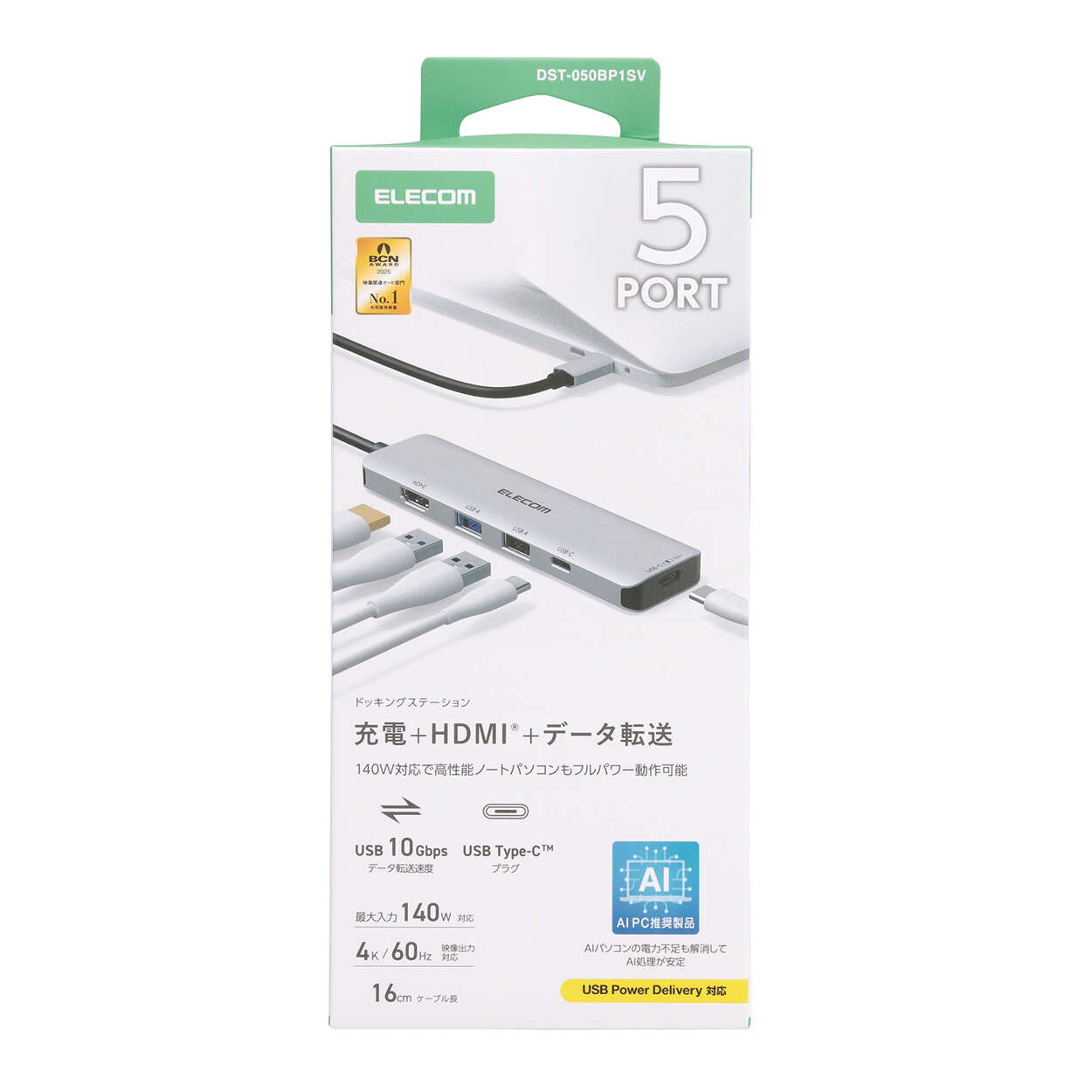手のひらサイズで最大140W給電。AI PCを始めとした高性能薄型ノートパソコンを充電しながら機能拡張できるUSB Type-C(TM)接続のドッキングステーションです。映像出力ができるHDMI(R)など5ポートを搭載しながら、持ち運びに便利なスリムな形状を実現。USB Power Delivery 最大140W入力でスピード充電しながら周辺機器を使えます。