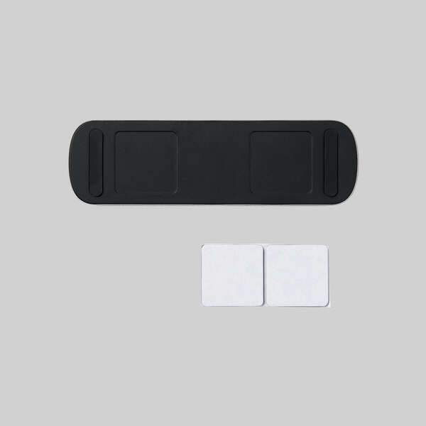 両面テープでデスクに固定できるスタンド付きです。製品本体はマグネットでスタンドに設置できるので、着脱も簡単です。