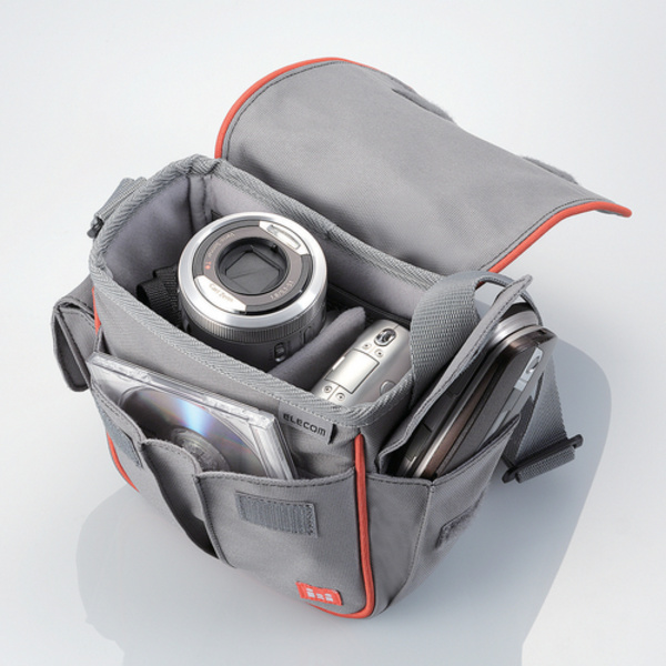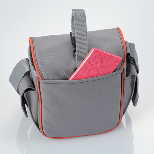 両手が使える!デジタルビデオカメラとデジタルカメラを一緒に収納できる、スタイリッシュなショルダーポーチ。備品や小物もたっぷり収納!4つのポケット付き。ベビーカーなどに取付可能なストラップが付属!