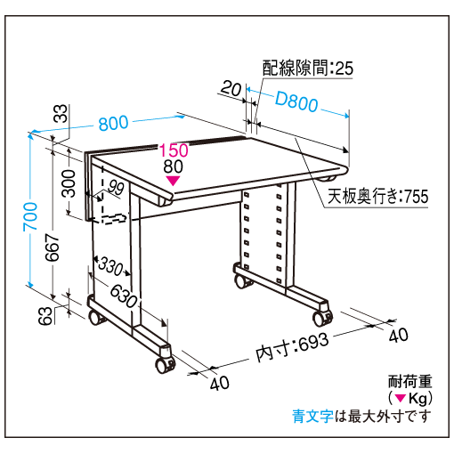 当社従来品に比べ、約2倍の天板耐荷重(平均分布耐荷重)。 スチール製天板採用で、驚異の耐荷重を実現しました。レーザプリンタ設置にも最適です。