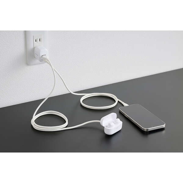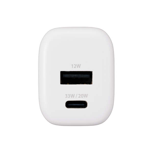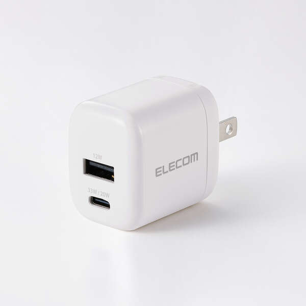 USB Type-C(TM)ポートとUSB-Aポートを搭載し、スマートフォンを2台同時に充電できるAC充電器です。最大33W出力のUSB Power Deliveryに対応し、MacBook Airなどのモバイルノートパソコンの充電も可能です。手のひらに収まるコンパクトサイズで、外出や出張時の持ち運びにも便利です。