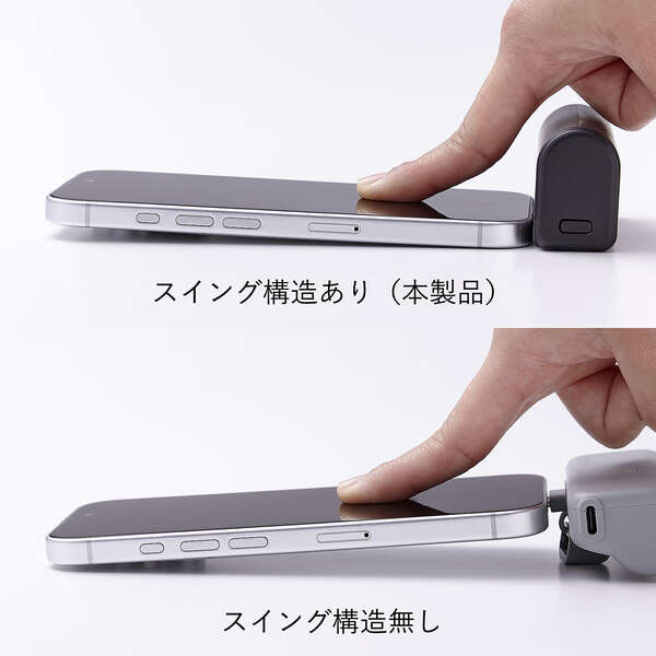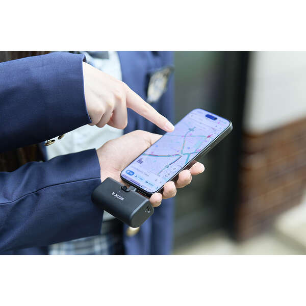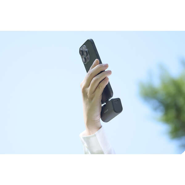 Lightning対応のiPhoneに一体型コネクターを直接挿して充電できる、コンパクトサイズのモバイルバッテリーです。ケーブルいらずで、これ一つでサッと手軽に充電できます。ストレスフリーに持ち運べて、外出先でも重宝します。