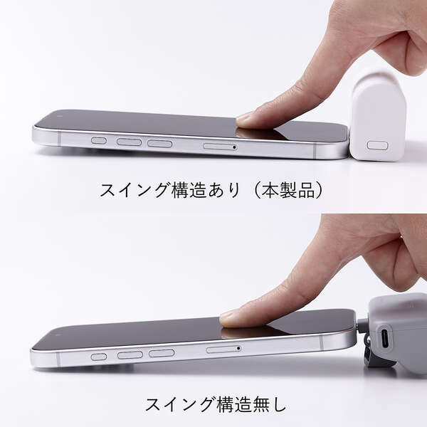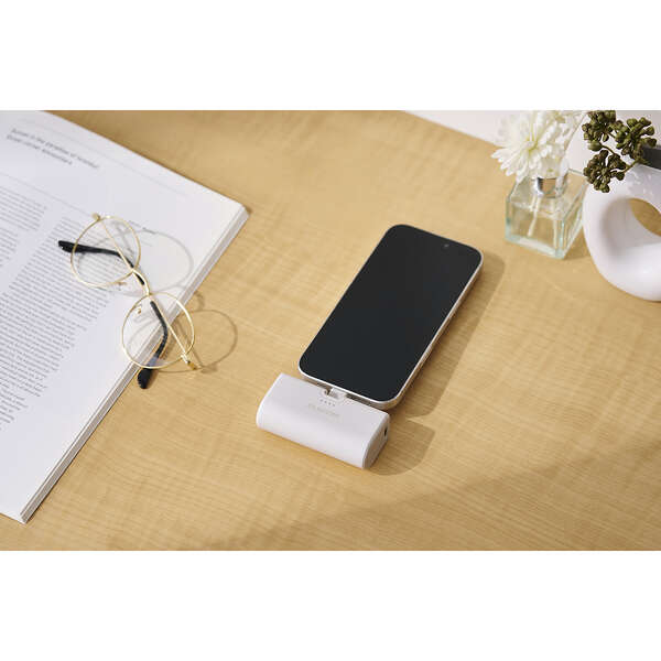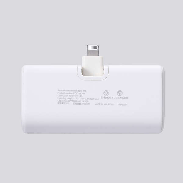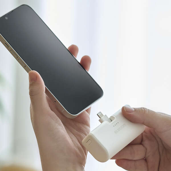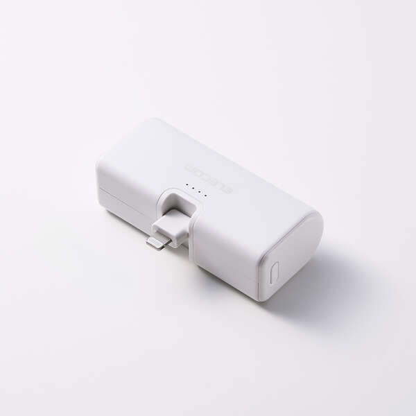 Lightning対応のiPhoneに一体型コネクターを直接挿して充電できる、コンパクトサイズのモバイルバッテリーです。ケーブルいらずで、これ一つでサッと手軽に充電できます。ストレスフリーに持ち運べて、外出先でも重宝します。