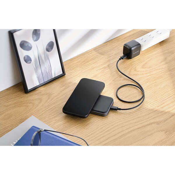 ケーブルいらず!マグネットでピタッと簡単充電!Qi2対応iPhoneに取り付け、最大15Wのワイヤレス充電ができるモバイルバッテリーです。マグネットで背面にぴったりくっつくため、ワイヤレス充電中のスマートフォン操作も楽にできます。