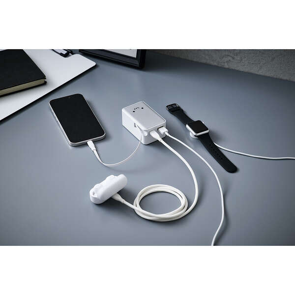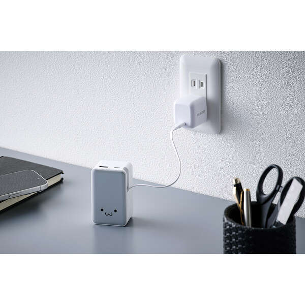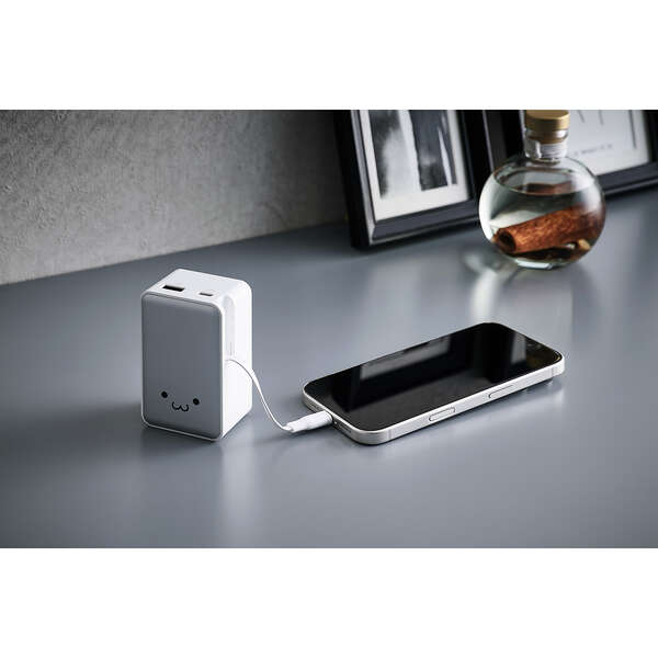 スッと伸ばして、くるっと収納!持ち運びに便利な本体一体型の巻き取り式USB Type-C(TM)ケーブルを備えたモバイルバッテリーです。最大出力35Wなので、スマートフォンやタブレットはもちろん、ノートパソコンの充電も可能。容量10000mAhで外出先でも安心して充電できます。ケーブルを持ち忘れる心配がなく、必要な長さに調節して使用できます。かわいいしろちゃんモデルです。