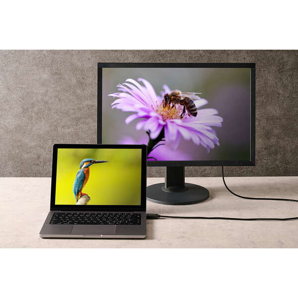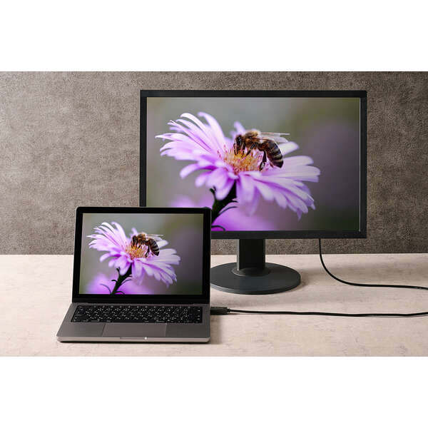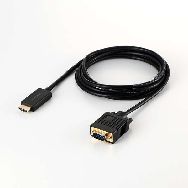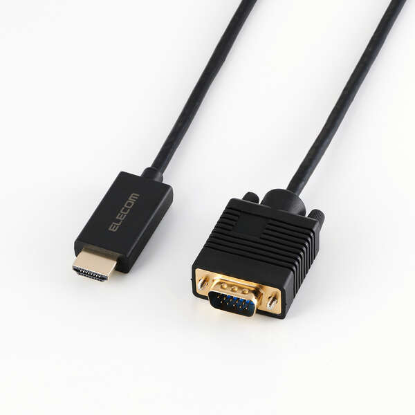 パソコンやプロジェクターなどの映像をディスプレイなどに出力できる、HDMI(R)ポートをVGA(D-sub15pin)プラグに変換するケーブルです。VGAポート搭載ディスプレイなどに映像を出力することができ、画面複製と画面拡張に対応しています。