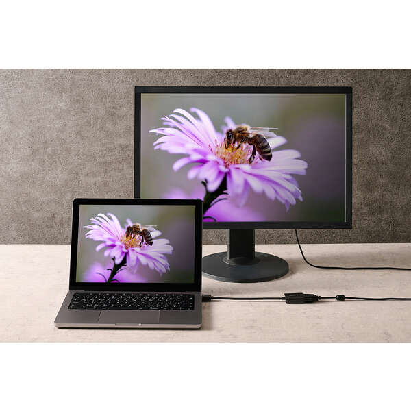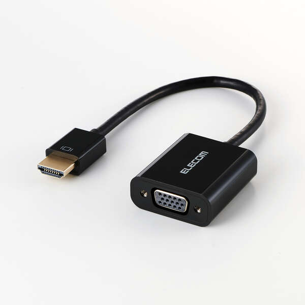 パソコンやプロジェクターなどの映像をディスプレイなどに出力できる、HDMI(R)ポートをVGA(D-sub15pin)ポートに変換するアダプターです。VGAコネクター搭載ディスプレイなどに映像を出力することができ、画面複製と画面拡張に対応しています。