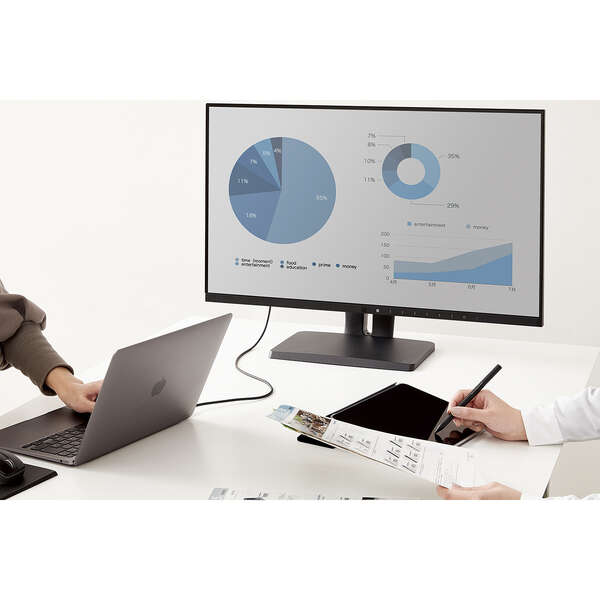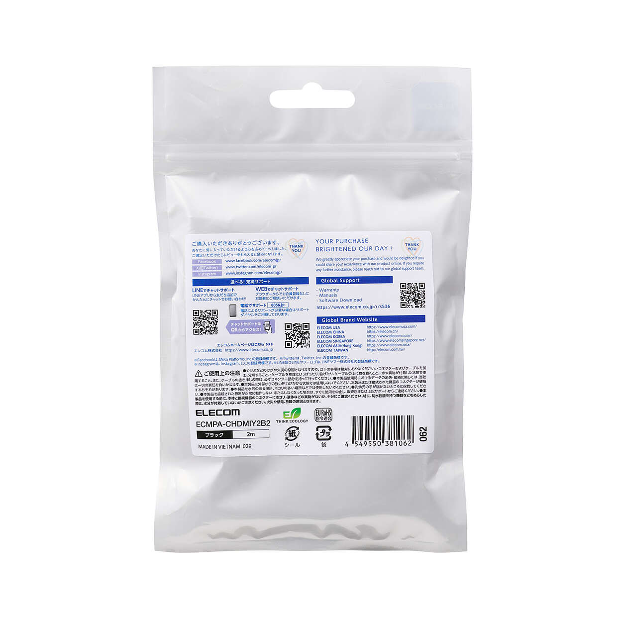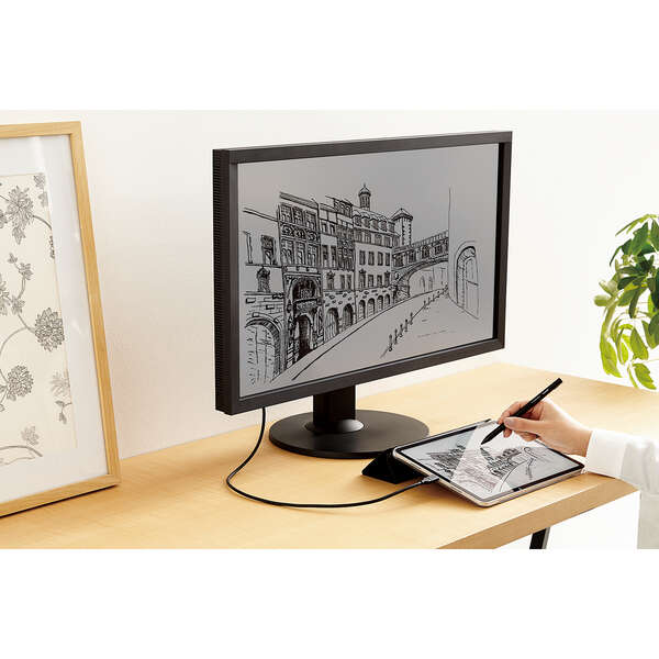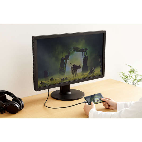 USB Type-C(TM)ポートを搭載したパソコン、スマートフォン、タブレットなどの映像信号を、HDMI(R)入力ポートを搭載したディスプレイなどに出力することができる映像変換ケーブルです。配線しやすくクセが残りにくい、やわらかケーブルを採用しています。