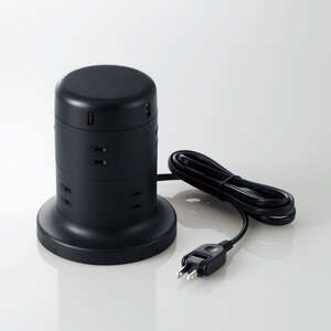 合計最大出力が4.8AのUSBポートを5つ備えたタワー型8口の電源タップです。USBポートや差込口は360度放射状に配しており、会議室の机などでの利用に最適です。可動式の脚パーツを活用することで、重い電源アダプタ等で重量バランスが偏っても安定した設置ができ、設けた穴を活用することでネジによる仮固定もできます。