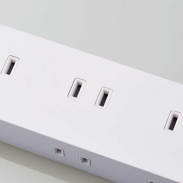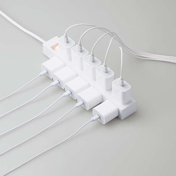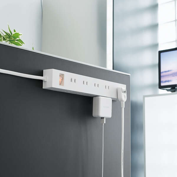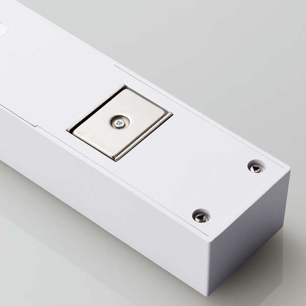 10mのコード長で、機器を配置できるエリアが拡大。上面と側面にそれぞれ5口ずつ、計10口の2ピン対応差込口を搭載したタップです。ON時に発光する一括スイッチで待機電力を抑え、底面の強力な磁石でスチール製の家具や事務機などにしっかり吸着させて使用できます。