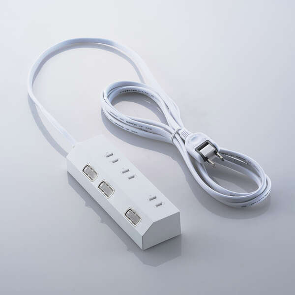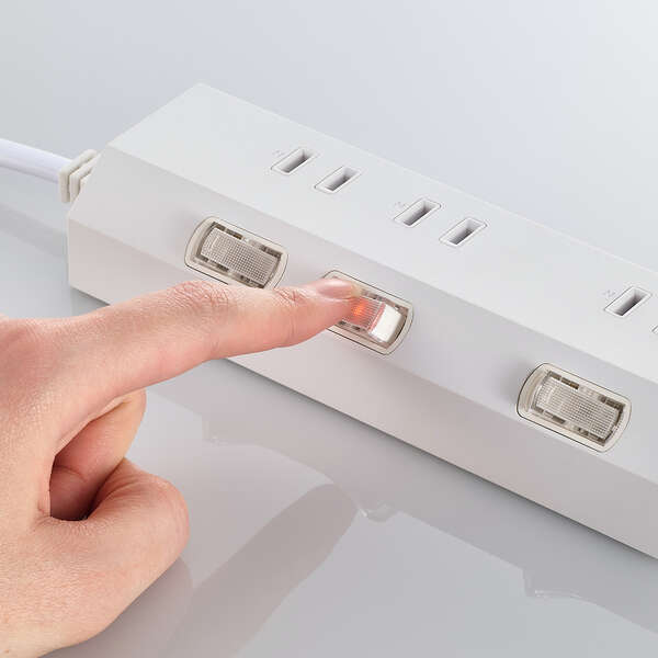 オフィスやご自宅などの、さまざまなシーンで使いやすい3個口タップです。個別スイッチで差込口ごとに、電源のON/OFFの切り替えができます。接続機器の電源がOFFの状態でも電力を消費する待機電力を削減し、電気代の節約に役立ちます。また、使用しない機器の電源管理もしやすくなります。