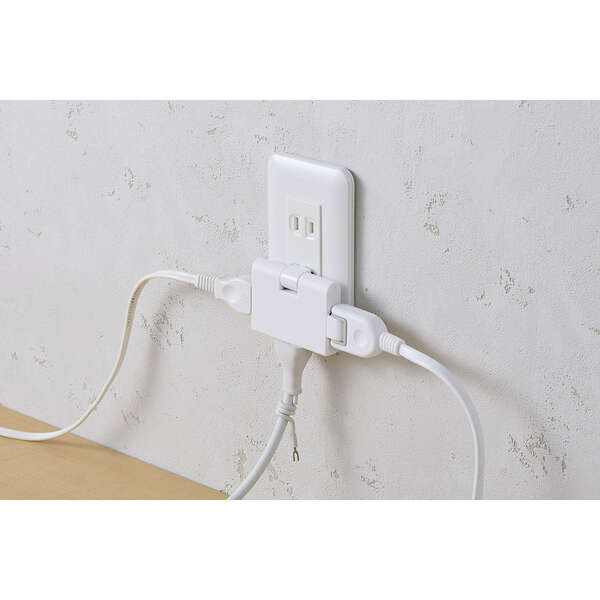 1つのコンセントから3口に電源を分配できる、薄型のトリプルタップです。壁にぴったり沿う形状だから、狭い場所でも配線できます。シーンに合わせて使える便利な2個セットです。