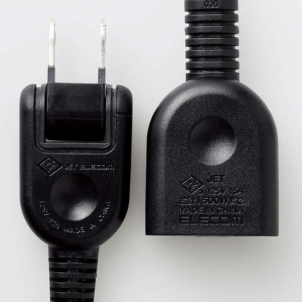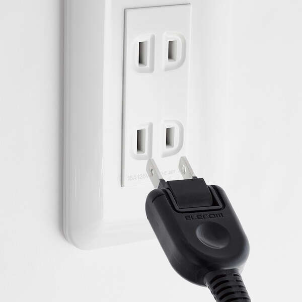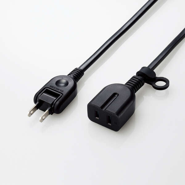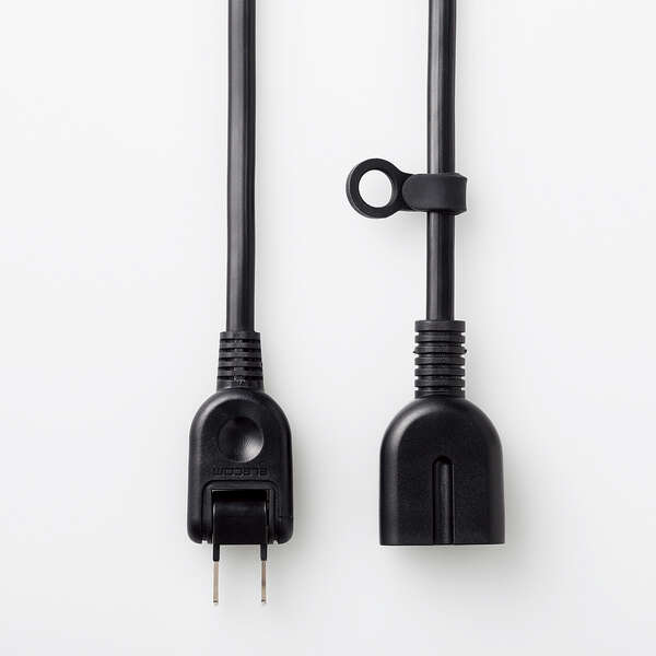 機器のコードがコンセントに届かない場合などに、電源を延長するためのコードです。極性のある2ピン式プラグ・3ピン式プラグでも使用できます。直径10mmの吊り穴を配したシリコン製のタグが付属しており、フックなどに引っ掛けて収納が可能。トラッキング防止プラグやホコリ防止シャッターで使用時の事故を防ぎ安全に使えます。 ※3ピン式プラグ使用時、アースは機能しません。