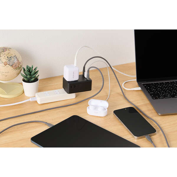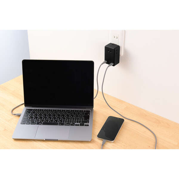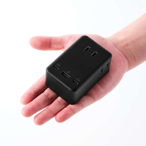 ACアダプター不要。パソコンやスマートフォンなどを、これ1台で高速充電。3つのAC差込口、1つのUSB-Aポート、2つのUSB Type-C(TM)ポートが一体になったモバイルUSBタップです。最大6台のデバイスを同時に接続でき、コンセントの少ない場所で活躍します。出張や旅行時などの多い荷物がこれ1つでまとまり、コンパクトサイズで持ち運びも便利です。