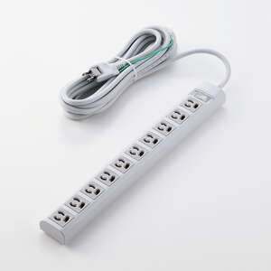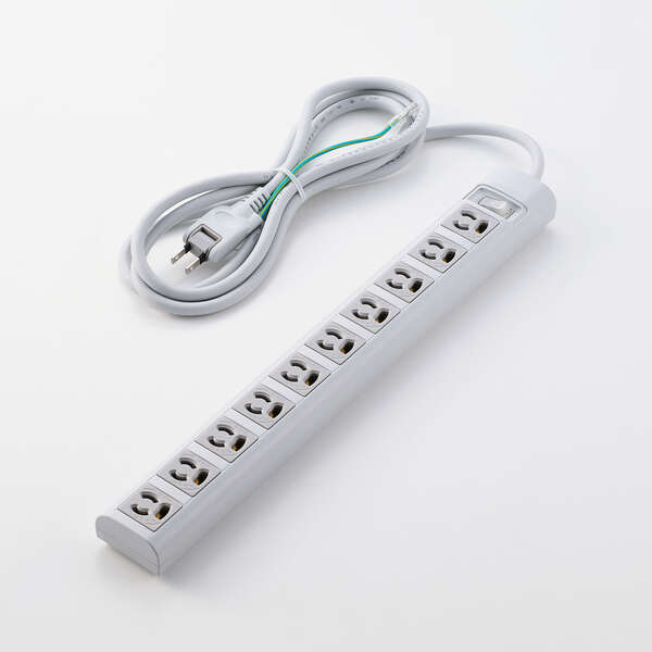プロジェクターやモニターなどの3ピンプラグ機器を、アダプターなしで接続できる3ピンプラグ対応タップです。抜け止め機能付きの差込口を10口備え、設置に便利な仮固定用マグネット、狭い場所でも配線しやすい2ピンのスイングプラグ、点灯式一括スイッチ、設置に便利な仮固定用マグネットを搭載。雷ガード機能と丈夫なキャブタイヤコードにより、安全に使用できます。
