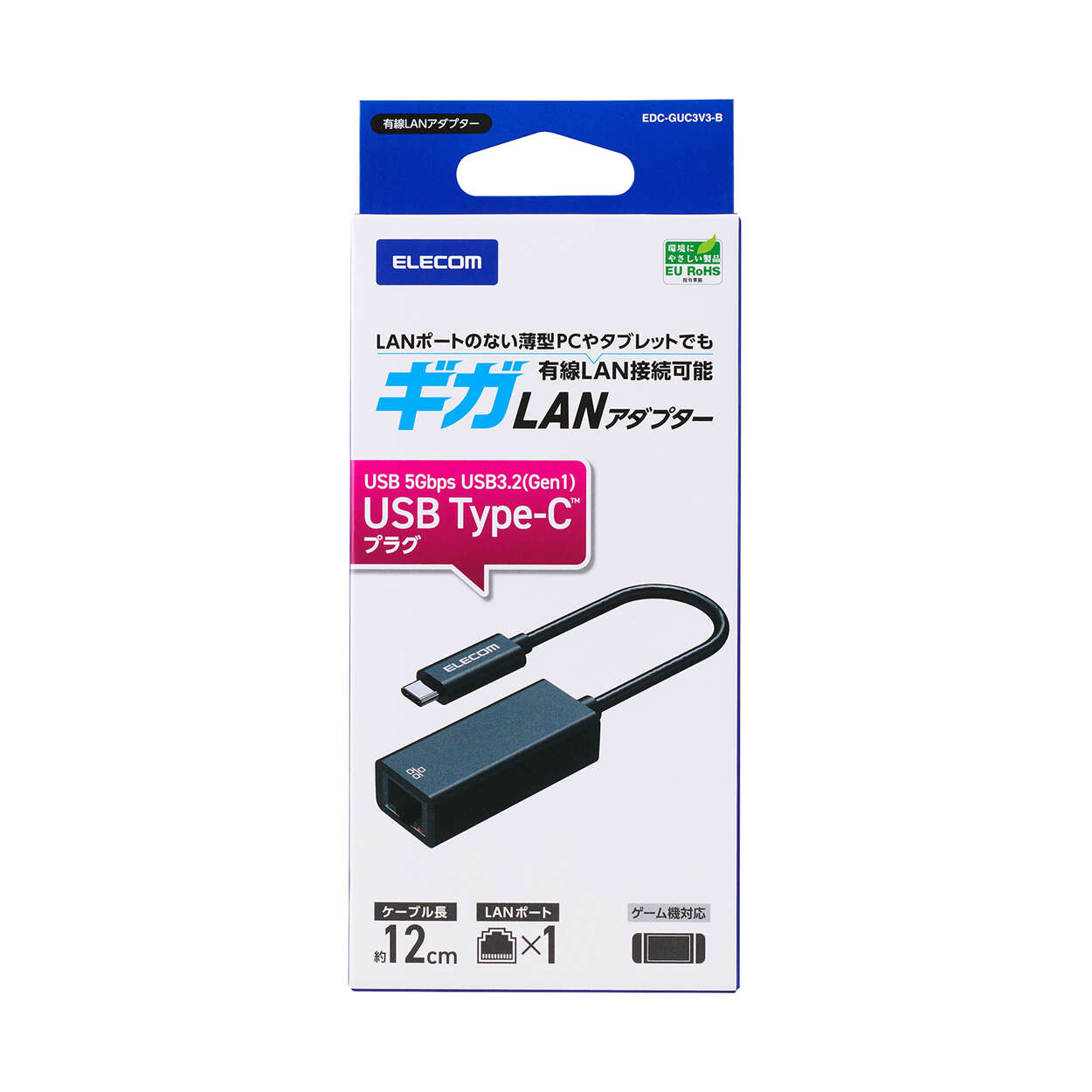 有線LANポートがない薄型のUSB Type-C™搭載パソコンやNintendo Switch™などのゲーム機に便利な、挿すだけですぐ使えるUSB Type-C™ 1Gbps有線LANアダプターです。