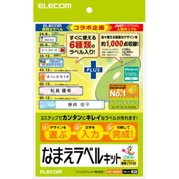 ジャストシステムの人気ラベル作成ソフトであるラベルマイティのエレコムセレクト版付。3ステップで簡単に作成できるソフトと色々なサイズが1度で楽しめる便利な用紙とのセットでラベルライフを楽しもう!!