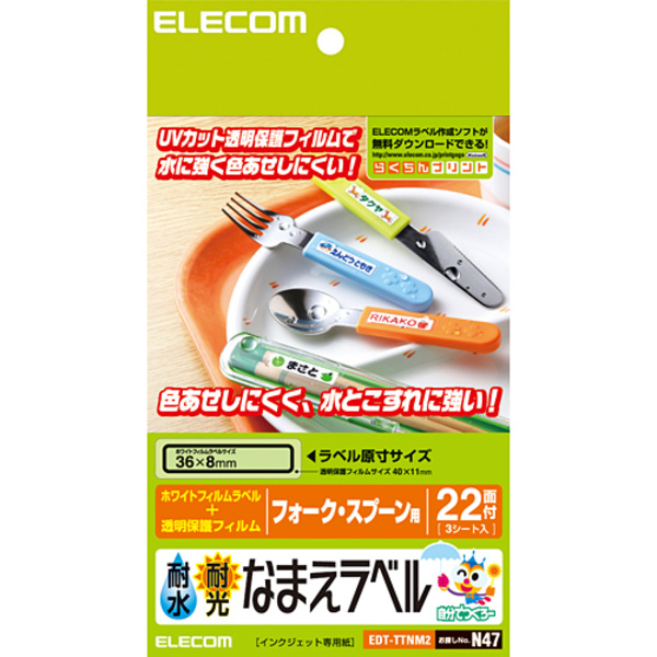 水に濡れるアイテムにも安心して名前入れができる!色あせしにくく、水とこすれに強い、耐水・耐光なまえラベル(フォーク・スプーン用)。