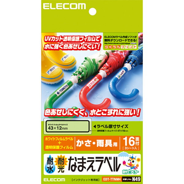 水に濡れるアイテムにも安心して名前入れができる!色あせしにくく、水とこすれに強い、耐水・耐光なまえラベル(かさ・雨具用)。