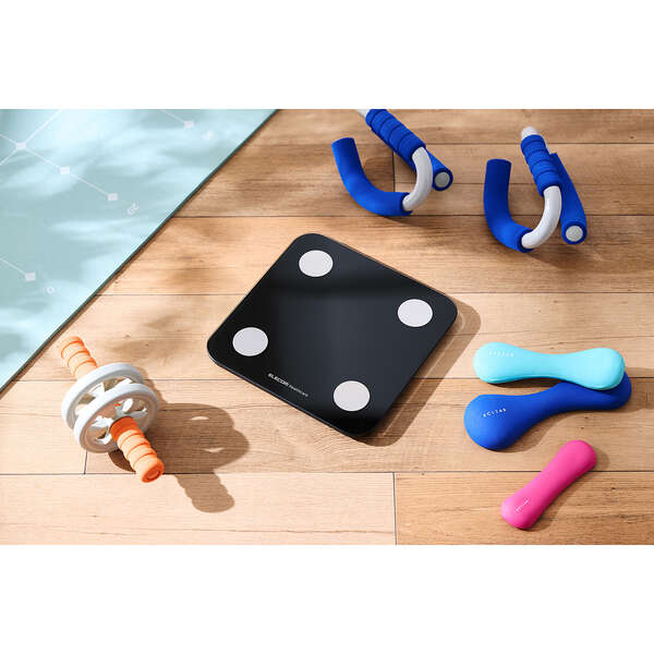 測定データをアプリにかんたん転送、毎日の健康管理をもっと正確でスマートに。Bluetooth(R)で簡単にアプリに接続して初期設定ができ、Wi-Fi通信でデータを自動転送する、Bluetooth+Wi-Fi通信機能搭載体組成計です。筑波大学との産学連携によって、より正確な内臓脂肪レベルや体脂肪率・骨格筋率などを測定できます。専用アプリ「ELECOM Healthcare」でBMIや体脂肪率、内臓脂肪レベル、基礎代謝などの13項目を確認できます。