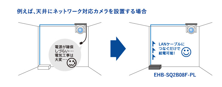 最大120WのIEEE 802.3af/at(PoE+)給電に対応し、Wi-Fi 7アクセスポイントやネットワークカメラなどをまとめて接続できます。 これ1台で既設のCat5e配線を活かしたフロアのPoE給電とネットワークの高速化が可能です。