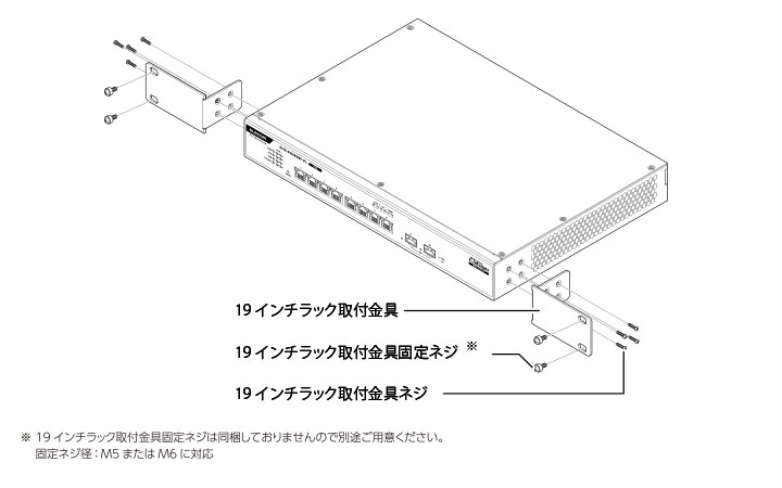 19インチラックマウント設置対応。付属のパーツを使用することにより、19インチラックマウント(EIA規格)へ簡単に組み込むことができます。