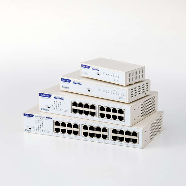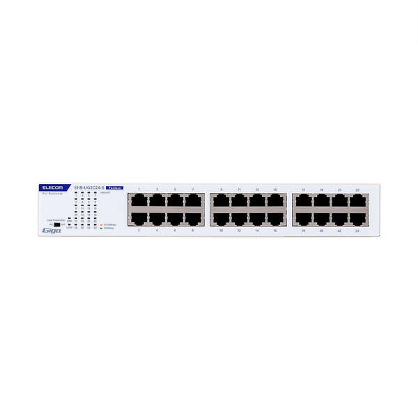最大消費電力が従来機種(※)より30%ダウンで省エネ、さらに奥行が約36.5mmもコンパクトになったモデルです。ファンレスで耐熱50℃に対応し、ループ防止機能や省エネ機能などの法人利用で安心の基本機能を搭載したGiga対応、電源内蔵のメタル筐体24ポートハブです。 ※従来機種:EHB-UG2B24-S