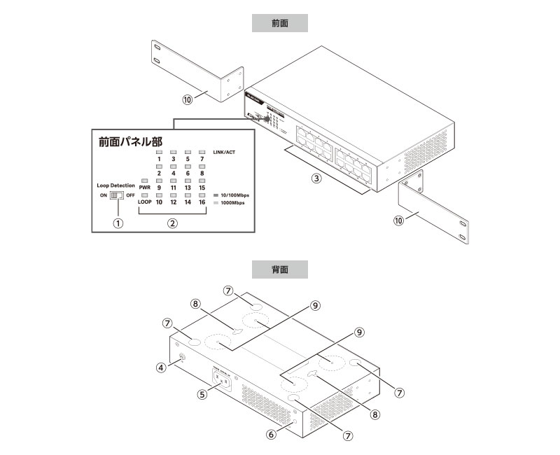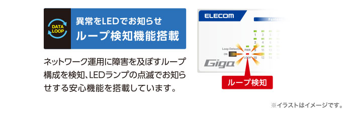 LEDランプの点滅によりネットワークループ発生をお知らせし、ネットワーク障害の解消を促します。