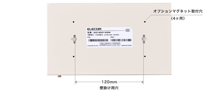 別売のハブ用オプションマグネット(EHB-EX-MG4)を取り付けることで、金属面への設置も可能になります。