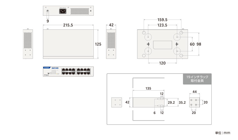 付属のパーツを使用することにより、19インチラック(EIA規格)へ簡単に組み込むことができます。