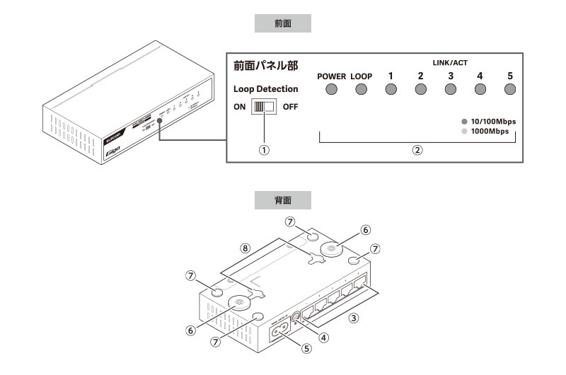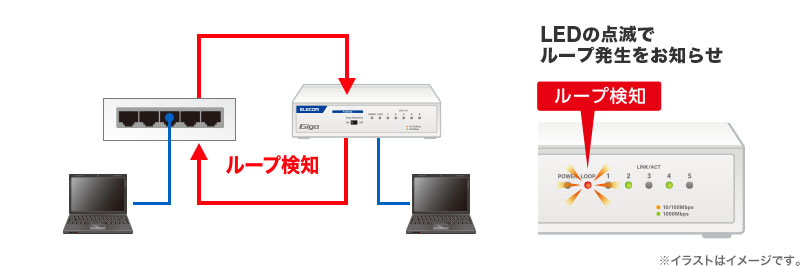 LEDランプの点滅によりネットワークループ発生をお知らせし、ネットワーク障害の解消を促します。