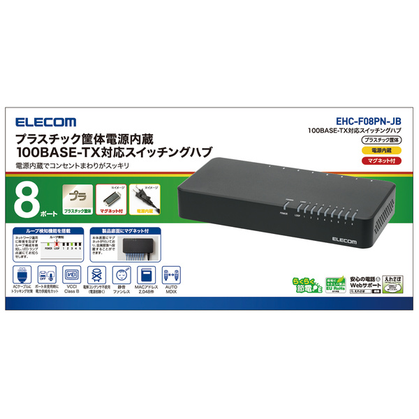 100BASE-TX対応の電源内蔵プラスチック筐体スイッチングハブです。