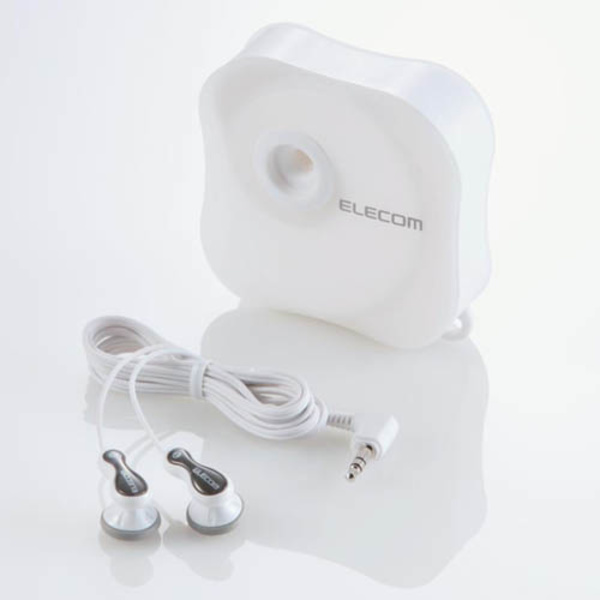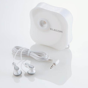 イヤホンを付属ボックスに差し込むだけで電源不要の小型スピーカとしても使えます。