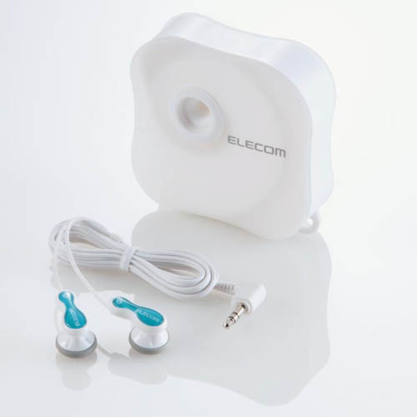 イヤホンを付属ボックスに差し込むだけで電源不要の小型スピーカとしても使えます。