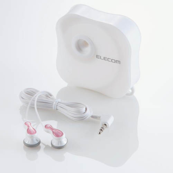 イヤホンを付属ボックスに差し込むだけで電源不要の小型スピーカとしても使えます。