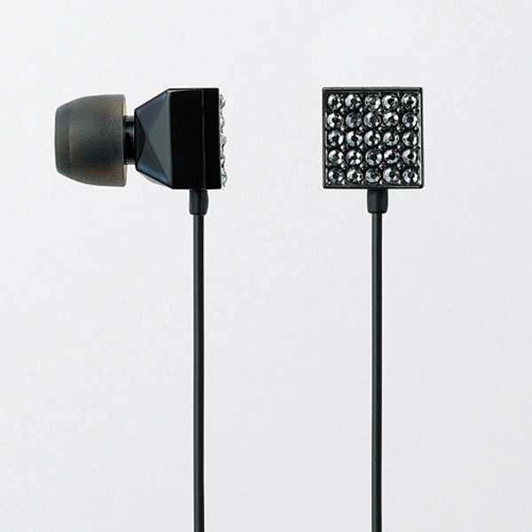 クールな女性にぴったりの“脱かわいい”系ヘッドホン!甘すぎないキラキラとした輝きを持つ、ラインストーンタイプのカナルタイプヘッドホン EARDROPS“STONY BLACK”。