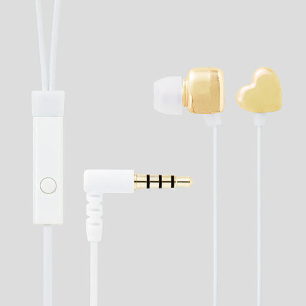 スリムシェイプのハートが甘すぎない可愛らしさを演出する、アクセサリーのようなヘッドホン!iPhoneでの音楽・動画視聴に加えて通話もできる、マイクとリモートコントローラが付いたステレオヘッドホン。