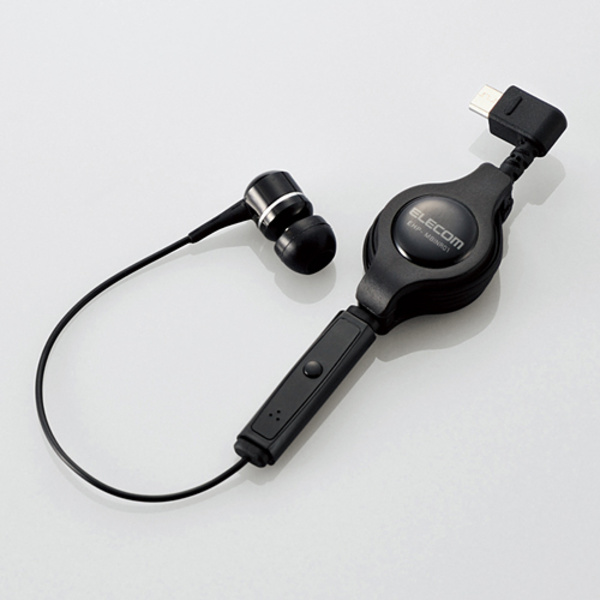 持ち運びや収納に便利なコード巻き取りタイプ!音声入出力対応のmicroUSB端子を持つスマートフォンでハンズフリー通話ができる、片耳タイプの着信応答/通話終了スイッチ付きヘッドホンマイク。